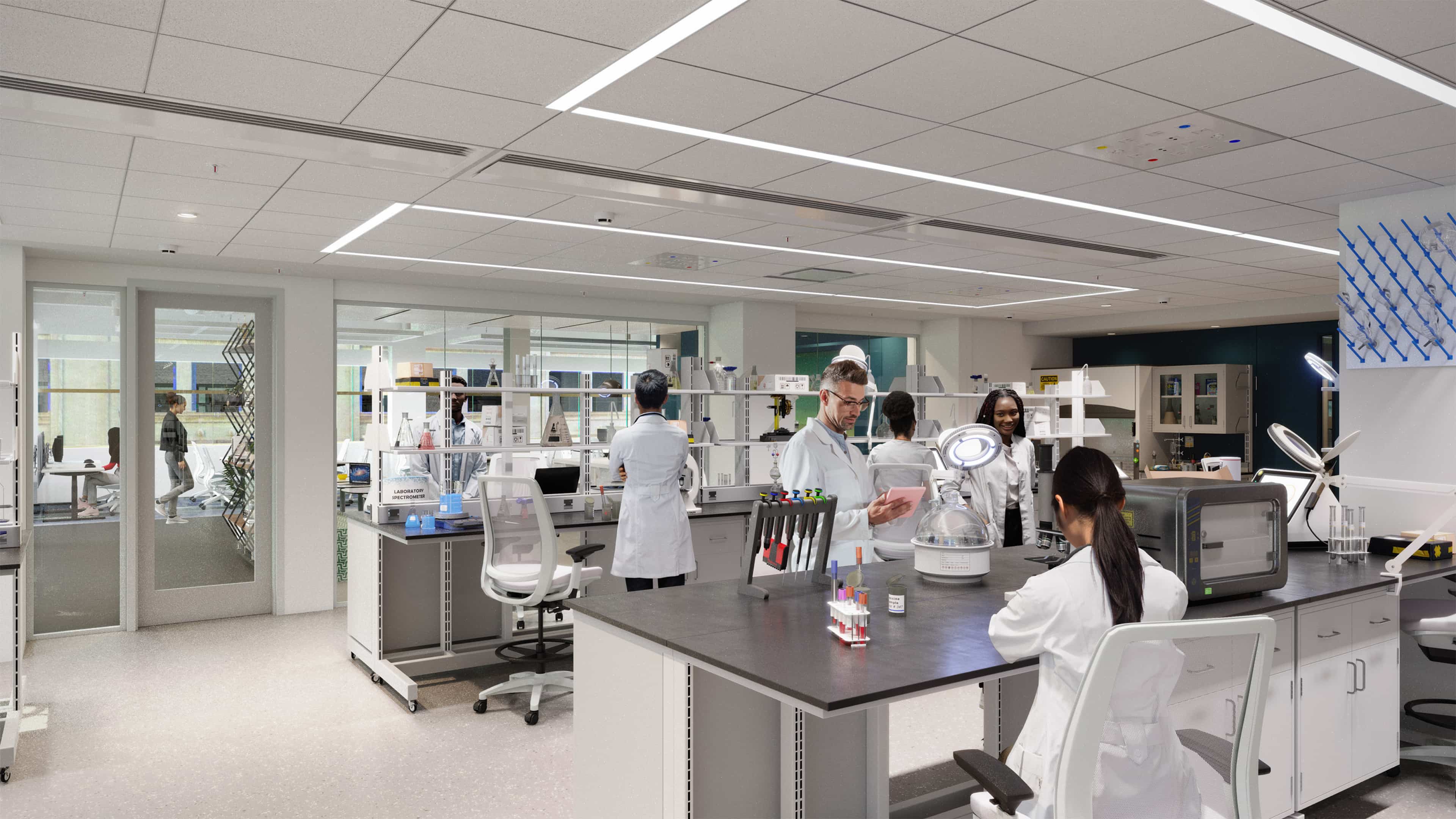 Exceptional lab space available to design on spec, or as fully-furnished, pre-wired pre-built space.